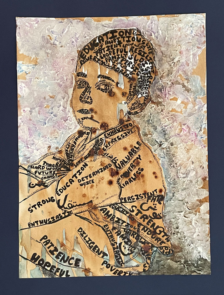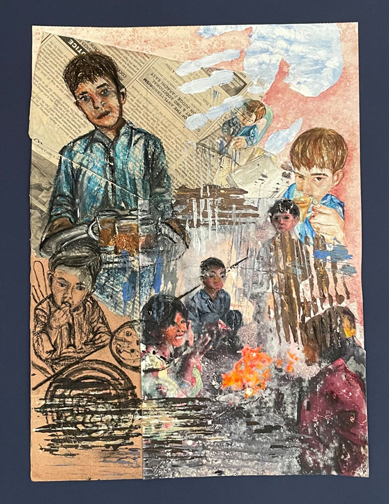 In this art piece, I represent the life of children from under-privileged backgrounds. A combination